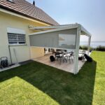 • Pergola bioclimatique moderne installée dans un jardin à Cheseaux-Noréaz